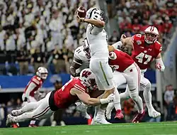 Western Michigan University quarterback Zach Terrell attempts a pass under pressure against Wisconsin in the 2017 Cotton Bowl Classic.