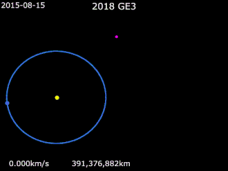 2. ^ a b c d e f g h i j "JPL Small-Body Database Browser: (2018 GE3)" (15 April 2018 last obs.). Jet Propulsion Laboratory. Retrieved 28 April 2018.