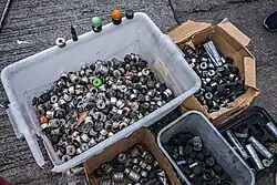 After the confrontations at CUHK and other universities on 12 November, protesters turned the university campuses into strongholds. Supplies were delivered to them by supporters of the protesters from various districts in Hong Kong.[31] Expecting the riot police to return, some of the protesters stayed in CUHK and slept in the car park and the sports grounds. In the morning of 13 November, protesters fortified the campuses by constructing roadblocks and barricades using bricks and furniture such as tables and chairs at major entrances near the university. Supplies from supporters, including medical bandages and food, were delivered to various universities in Hong Kong. A gym room inside CUHK was converted into a first-aid station.[32] Protesters also practised throwing petrol bombs inside the campus, set up caltrops, removed sports equipment such as bows and arrows, javelins, and rackets, and set up makeshift catapults.[33][34] Media noted that protesters were recreating "medieval weapons".[35][33]