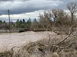 Much of Milton-Freewater was evacuated when the Walla Walla River overtopped a levee protecting that city. Upstream, the river and some of its tributaries rendered some roads in and near the Blue Mountains impassable.[9] US 12 was closed between Wallula and Touchet because of flooding from the Walla Walla River, as well as between Prescott and Dayton where the Touchet River flowed out of its banks and damaged the levee system.[10][11]