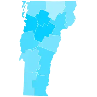 Biden easily emerged victorious in the Green Mountain State 66.09% to 30.67%, a margin of 35.4%. This is the first time Vermont was the strongest state for either party since 1956, when it was Republican Dwight D. Eisenhower's best state. Vermont also saw the largest increase in turnout from 2016, increasing 14.3%.[4] Biden greatly improved on Hillary Clinton's 55.7% vote share and 25.9% margin from 2016, when third-party candidates received over 14% of the vote; with an improvement of 9% in the margin of victory, this marked the strongest leftward shift any state experienced in 2020.[5] Biden's performance was also the fourth-strongest Democratic performance in state history, as well as the third-largest Democratic margin of victory. Trump carried only one county, sparsely populated Essex bordering New Hampshire, which had voted for the winner from 1980 to 2016. Consequently, Biden became the first president to win without the county since Jimmy Carter in 1976.