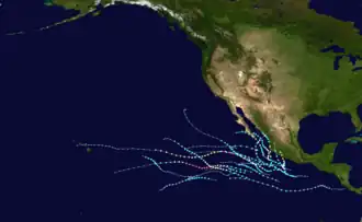 17. ^ "Basin Archives: Northeast Pacific Ocean Historical Tropical Cyclone Statistics". Fort Collins, Colorado: Colorado State University. Retrieved July 8, 2022.