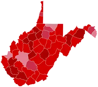This marks the fourth presidential election, both consecutively and ever, in which the Republican won every county in West Virginia. Trump's 69.97% of the vote is the highest percentage any party has won in the state's history.