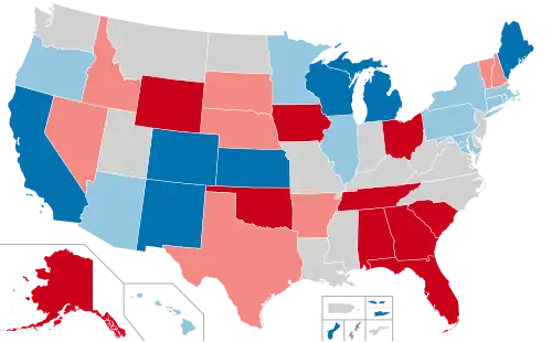 ![]() Democratic incumbent Term-limited or retiring Democrat Republican incumbent Term-limited or retiring Republican Independent incumbent No election | ||||||||||