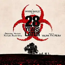 The Scottish progressive hip hop group Young Fathers—a trio consisting of Alloysious Massaquoi, Kayus Bankole and Graham Hastings—composed the film score for 28 Years Later, replacing John Murphy who did the same for its predecessors.[2][3] Boyle chose them to work on the film on his affinity towards their work and collaborated with crew members from Scotland, as the film was set in that country. Boyle used some of their music for T2 Trainspotting (2017).[4]