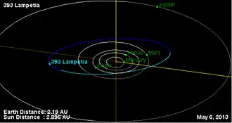 3. ^ a b c "393 Lampetia", JPL Small-Body Database Browser, NASA Jet Propulsion Laboratory, retrieved 10 May 2016.