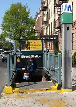 38. ^ Cox, Jeremiah (June 9, 2009). "A close-up of some of the detailing of the ornate 1910s platform entrance to 77 Street". subwaynut.com. Retrieved April 17, 2020.