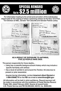 - ^ Warrick, Joby (February 20, 2010). "FBI investigation of 2001 anthrax attacks concluded; U.S. releases details". The Washington Post. Archived from the original on November 10, 2012. Retrieved March 29, 2011.