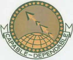 The 600th Bombardment Squadron was activated at Ephrata Army Air Base, Washington in early 1943 as one of the four original squadrons of the 398th Bombardment Group.[1][3] The squadron trained under II Bomber Command with Boeing B-17 Flying Fortresses.[1] The squadron's training was interrupted in July 1943, when it became a Replacement Training Unit.[3] Replacement training units were oversized units which trained aircrews prior to their deployment to combat theaters.[4] In November, replacement training ended and the squadron resumed its preparation for overseas deployment.[3]