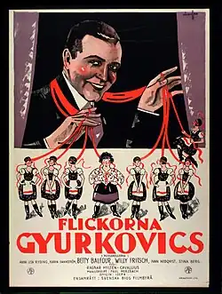 A Sister of Six (German title: Die sieben Töchter der Frau Gyurkovics, Swedish title: Flickorna Gyurkovics) is a 1926 silent romantic comedy film directed by Ragnar Hyltén-Cavallius and starring Willy Fritsch, Betty Balfour and Lydia Potechina.[1] It was a co-production between Germany, Sweden and the United Kingdom. It was shot at the Tempelhof Studios in Berlin. The film's sets were designed by the Swedish art director Vilhelm Bryde.