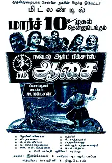 2. ^ "ஆசை – 1956 வருடம் தமிழ்த் திரைப்படங்கள், சினிமா, திரைப்படம், கலைகள்". tamilmarai.com (in Tamil). Archived from the original on 15 October 2021. Retrieved 15 October 2021.