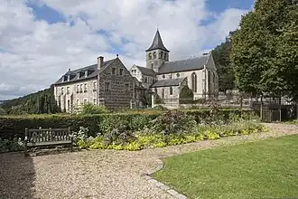 The church of the Abbey is classified as a monument of Romanesque style, which was dominant in Catholic Europe during the time when the church was founded.[5] However, some parts of the church were rebuilt and restored due to the damages caused during the religious wars in the 16th century, a fire in 1787, the First World War, and bombardments during the Second World War. Thus, since the Abbey has been reconstructed multiple times,[6] some elements of later architectural styles can be observed as well.