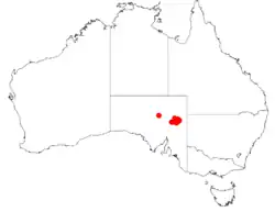 Wyrilda is endemic in South Australia, where it is found at the northern end of the Flinders Ranges, from Mount Lyndhurst east as far as Arkaroola[6] in the Tirari Desert and Sturt Stony Desert regions where it grows in gullies and on stony hillsides in skeletal, calcareous loamy soils in tall shrubland.[1][4]