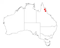 It has a limited distribution in far north Queensland around Mount Mulligan where it is known to form dense thickets. It is commonly situated on and among rock pavements and outcrops growing in sandstone based shallow rocky soils.[1]