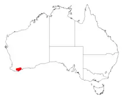 It is native to an area in the Great Southern region of Western Australia where it is found growing in sandy loam soils.[1] The range of the plant extends from the south east of Ongerup down to around the Gordon Inlet in the south east where it is commonly situated on creek flats as a part of Eucalyptus occidentalis woodland communities.[2]