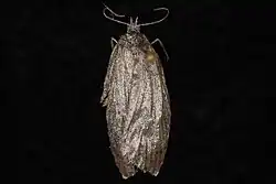 The wingspan is 24–29 mm.[3] Adults have been recorded on wing nearly year round.