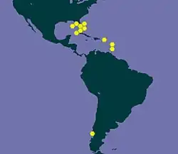 This marine species occurs in the Caribbean Sea off Mexico, Cuba, Barbados and Saint Lucia; in the Gulf of Mexico off the mouth of the Mississippi River.