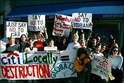 - ^ a b "My first protest: This is what democracy looks like". The Transcript. Archived from the original on 2003-05-13. Retrieved 2003-02-13.