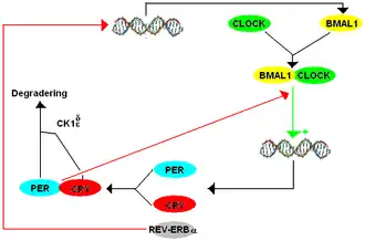18. ^ Xu, Ying; Kong L. Toh; Christopher R. Jones; et al. (12 January 2007). "Modeling of a human circadian mutation yields insights into clock regulation by PER2". Cell. 128 (1): 59–70. doi:10.1016/j.cell.2006.11.043. PMC 1828903. PMID 17218255.