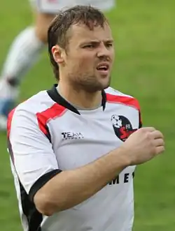 Alfredas Skroblas (born 11 March 1984) is a Lithuanian professional football player who plays for UMF Snaefell in Iceland. As of 10 March 2017, he is serving a 12-month ban imposed by the Lithuanian Football Federation for match-fixing.[1]