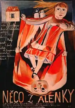 Alice is a 1988[1] surrealist dark fantasy film written and directed by Jan Švankmajer. Its original Czech title is Něco z Alenky, which means "Something from Alice". It is a loose adaptation of Lewis Carroll's first Alice book, Alice's Adventures in Wonderland (1865), about a girl who chases a white bunny into a bizarre fantasy land. Alice is played by Kristýna Kohoutová. The film combines live-action with stop-motion animation, and is distinguished by its dark production design.
