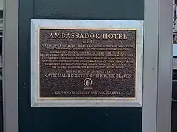 Plaque commemorating the hotel's placement on the National Register of Historic Places