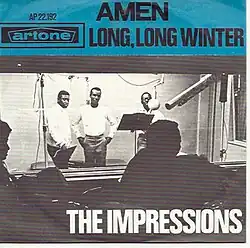 The song went to no. 1 on Cashbox Magazine's R&B chart for three weeks and reached no. 7 on the Billboard Hot 100 singles chart in 1964.[4] The B-side, "Long, Long Winter", peaked at #35 on the Cashbox R&B chart. A new version was released by The Impressions in 1969 under the title "Amen (1970)", reaching #44 on the Billboard Best Selling Soul Singles chart in January 1970.