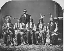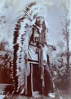 American Horse (Lakota: Wašíčuŋ Tȟašúŋke; also known as American Horse the Younger; c. 1840 – December 16, 1908) was an Oglala Lakota chief, statesman, educator and historian. American Horse is notable in American history as a U.S. Army Indian Scout and a progressive Oglala Lakota leader who promoted friendly associations with whites and education for his people. American Horse opposed Crazy Horse during the Great Sioux War of 1876–1877 and the Ghost Dance Movement of 1890, and was a Lakota delegate to Washington. American Horse was one of the first Wild Westers with Buffalo Bill's Wild West and a supporter of the Carlisle Indian Industrial School. His record as a councilor of his people and his policy in the new situation that confronted them was consistent, and he was known for his eloquence.