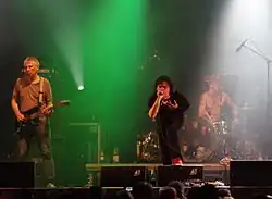 Punk was a kind of rebellious rock music that began in the 1970s as a reaction against the popular music of the day – especially disco, which was seen as insipid and uninspired. Punk drew on American bands including the Velvet Underground, The Stooges and the New York Dolls.[68] Punk was loud, aggressive and usually very simple, requiring little musical training to play. Later in the decade, British bands including the Sex Pistols and The Clash enjoyed substantial fame at home and, to a lesser degree, in the United States. American bands in the field included most famously The Ramones, as well as groups like Talking Heads that played a more artsy kind of music that was closely associated with punk before eventually evolving into pop-new wave.[69] Other major acts include Blondie, Patti Smith and Television. Most of these bands got their start at what is considered "ground zero"[42] of punk rock, a club named CBGB. The small club in New York threw a festival in 1975 that showed off the "top 40 unrecorded rock bands". Among these bands were the previously mentioned The Ramones, Sex Pistols, Blondie and the like.