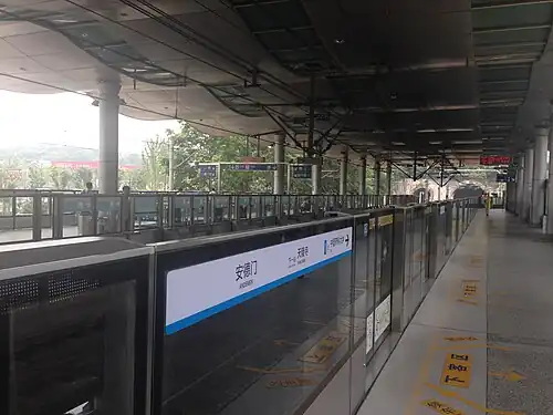 Andemen station (simplified Chinese: 安德门站; traditional Chinese: 安德門站; pinyin: Āndémén Zhàn), is a transfer station of Line 1 and Line 10 of the Nanjing Metro. It started operations on 3 September 2005 as part of Line 1's Phase I that ran north to Maigaoqiao;[1] the previous branch of Line 1 from this station to Olympic Stadium was re-designated as Line 10 when that line opened on 1 July 2014,[2][3] and Andemen became the eastern terminus of Line 10.
