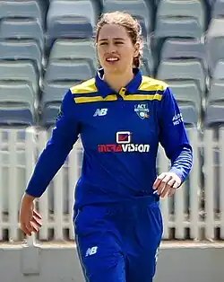 Angelina Anne Genford (born 30 October 2002)[1] is an Australian cricketer who plays as a right-arm fast-medium bowler and right-handed batter for Australian Capital Territory in the Women's National Cricket League (WNCL).[2] She made her professional debut during the 2021–22 WBBL for Hobart Hurricanes against Adelaide Strikers, scoring eight runs off 12 balls in a 48-run loss.[3][4]