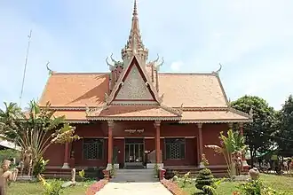 The museum is located in a wat.[2] The museum was funded with the help of the European Union, one of the objectives for the creation of the museum was to preserve the archaeological artifacts found in Cambodia.[3] Also one of the intentions for the creation of the museum was to promote tourism in Takéo Province.[4] The museum first opened to the public in 1999, at its inauguration representatives of the Ministry of Culture and Fine Arts, the Ministry of Tourism, the European Union, the University of Hawaii and PRASAC were present.[5] In March 2020, the U.S. government gave $4.5 million to protect Cambodia's cultural heritage, the funds were used by the Ministry of Culture and Fine Arts to improve the Angkor Borei museum exhibits as well as the creation of educational programs at the museum.[6] In September 2020, the Cleveland Museum of Art organized an exhibition called "Revealing Krishna", some of the statues were loaned by the Angkor Borei Museum.[7]