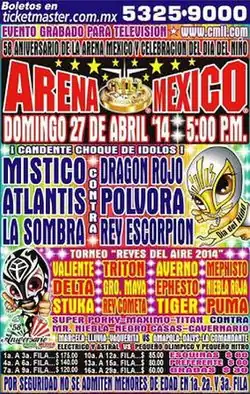 9. ^ a b c Redaccion (April 28, 2014). "'Revolucionario' festejo del Día del Niño en la Arena México". MedioTiempo (in Spanish). MSN. Retrieved September 5, 2014.