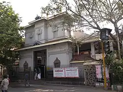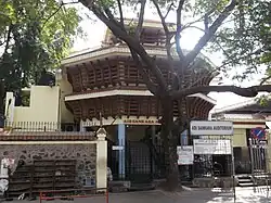 When Anna Nagar was developed as a model town in the late 1960s, the annual vilakku pooja during the mandala makaravilakku season was celebrated by Ayyappa devotees in the newly formed Shanti Colony. The residents' response to this annual celebration resulted in the formation of the Sri Ayyappa Seva Samajam (SASS) in 1976, with 14 members in its committee. In 1979, the Samajam started a charitable medical centre for the poor and needy.[1] The same year, a 7-ground land near the Visveswarayya Tower was allotted to the Samajam by the Tamil Nadu Housing Board for the construction of a temple, for which members contributed 38,000 towards initial payment.[1] Initially, a makeshift temple was built in a thatched shed along with a charitable medical centre in another shed.[2] Work on the construction of a permanent temple continued for the next five years in consultation with temple architect Kanipayyur Krishnan Namboodiri. The construction was guided by P. N. Subramaniam, the founder-president, P. Chandrasekhara Menon, the second president, and P. V. Nair, and financial support was provided by R. Ratnam, then chairman of Sundaram Industries, and P. Velayudham.[1] In May 1984, the typical Kerala-style temple was completed, conforming to the traditional shastraic stipulations. The kumbabishekam and consecration of the idol were performed on 13 May 1984 by temple Thantri Abli Krishna Vadhyan Namboodiri and K. M. Kesva Battatripad, former chief priest of the Sabarimala Temple.[2] The panchaloha Ayyappan idol was made by Chenganur T. Rajarathinam.[1] Idols of Ganesha, Subramanya, Goddess Durga, and Anjenaya were also consecrated. Later, a Navagraha (the nine planets) shrine was added in the temple. In 1989, a unique architectural structure known as the Natamandapam with an imposing gopuram was added. In 2005, gold covering of the 22-paras (segments) dwajasthambam and 27 thazhikakudams with about 6 kg of gold was completed. A special kumbabishekam of the gold-covered dwajasthambam was performed on 20 June 2005.[2]