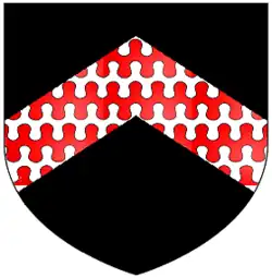 Arms of Hankford of Annery: Sable, a chevron barry nebuly argent and gules.[22]
