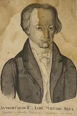 Antônio Carlos Ribeiro de Andrada Machado e Silva (1 November 1773 – 5 December 1845) was a Brazilian judge (juiz de fora), appellate judge (desembargador) and politician. At the time of Brazilian Independence, he often used the pseudonym "Philagiosetero" in his newspaper articles. He adopted the parliamentary name of "Andrada Machado".