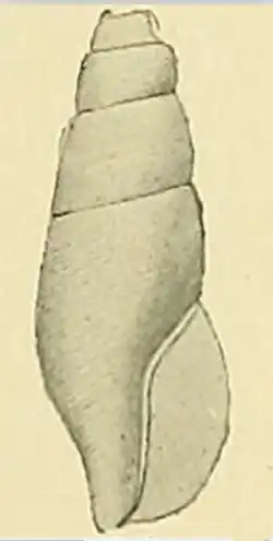 (Original description) The very small shell is subulate, thin and fragile and minutely spirally striate.