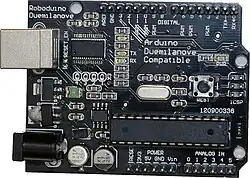 Several Arduino-compatible products commercially released have avoided the "Arduino" name by using "-duino" name variants.[65]