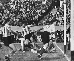 The goal scored by Ernesto Grillo during a 1953 friendly match played at River Plate stadium, where Argentina won 3–1