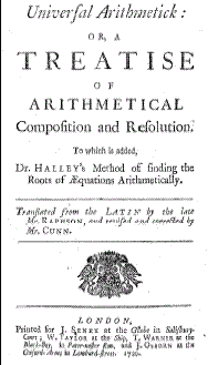 Whiston's original edition was published in 1707. It was translated into English by Joseph Raphson, who published it in 1720 as the Universal Arithmetick. John Machin published a second Latin edition in 1722.