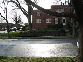The Arlington Village Historic District is a national historic district located at Arlington County, Virginia. It contains 657 contributing buildings (including 656 apartment units) in a residential neighborhood in South Arlington. The area was constructed in 1939, and is a planned garden apartment community that incorporates recreational areas, open spaces, a swimming pool and courtyards within five superblocks. It also includes a shopping center consisting of six stores. The garden apartments are presented as two-story, brick rowhouses with Colonial Revival detailing. There are three building types distinguished by the roof form: flat, gambrel, or gable. Arlington Village was the first large-scale rental project in Arlington County and the first Federal Housing Administration-insured garden apartment development.[3] It was listed on the National Register of Historic Places in 2008.[1]
