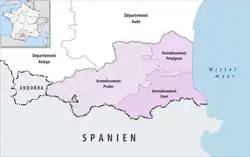The 3 arrondissements of the Pyrénées-Orientales department are:[1]