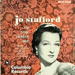As You Desire Me is an album by Jo Stafford, released by Columbia Records as a 10" long-playing record (catalog number CL-6210), a box set of 45-rpm records (catalog number 39720), and a two-EP set (catalog number B 298), in 1952.