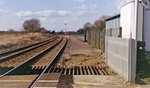 Ashwell railway station was a station in Ashwell, Rutland on the line between Melton Mowbray and Oakham. It lies west of the village, on the road to Whissendine. Just north of Ashwell was Ashwell Junction where the Cottesmore Ironstone Branch joined. This was in use between 1883 and 1974 and served quarries in the vicinity of Cottesmore and Exton.[1] Part of the former mineral branch line is now Rutland Railway Museum (trading as Rocks by Rail: The Living Ironstone Museum).