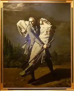 In the 1804 painting and sculpting exposition, Pierre-Auguste Vafflard presented a painting depicting Edward Young burying his daughter by night. An anonymous critic commented on the monochromatic nature of that painting with the lyrics: