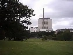 The support building (old hospital) mostly contains administrative offices, clinical and housekeeping support, physio- and occupational therapy, the bone marrow transplant ward, some inpatient and outpatient services as well as teaching and research facilities. The support building is a central part of the hospital complex and is linked to the new building section by a skywalk.[13]