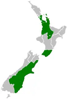 In New Zealand, Australian rules football dates back to the 1860s, was home to the first club formed outside Australia in 1876 and was the first colony outside of Australia to take up the sport. The sport's official name was changed in 1890 to Australasian Football acknowledge New Zealand's participation and remained for some time even after the country was expelled from the Australasian Football Council.[2] After a half century hiatus of organised competition, it has grown rapidly as an amateur sport.[3] Today five of New Zealand's sixteen regions have organised competitions: Auckland (Auckland AFL); Canterbury (Canterbury AFL); Wellington (Wellington AFL); Waikato (Waikato AFL) and Otago (Otago AFL). A four-team national competition with a national draft has been contested at the North Harbour Stadium in Auckland since 2016 for men and 2019 for women. The national team were crowned International champions at the 2005 Australian Football International Cup and competed annually against the AFL Academy between 2012 and 2019. Between the 2010s until 2022 the game was played in New Zealand schools.[4][5]