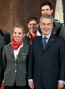 4. ^ a b "Austria to send 130 athletes to Sochi Olympics; Alpine skier Benjamin Raich named flagbearer". Daily Reporter. Greenfield, Indiana: Associated Press. 27 January 2014. Archived from the original on 27 January 2014. Retrieved 27 January 2014.