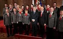Originally Benjamin Raich[4] was scheduled to carry the flag at the opening ceremony, however he withdrew after he decided to skip the combined competition, thus delaying his arrival in Sochi.[5] Nordic combined athlete Mario Stecher was named his replacement.[1]