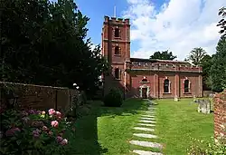 The Church of England parish church, dedicated to St Mary, was founded by Margaret, Marchioness of Carnarvon (d. 1768), with construction costs defrayed by her husband, James Brydges, 3rd Duke of Chandos. It was constructed 1768–71 in red brick to a design by an unknown local architect. The exterior Georgian architecture and crenellated tower echo the style of nearby Avington Park.[4]